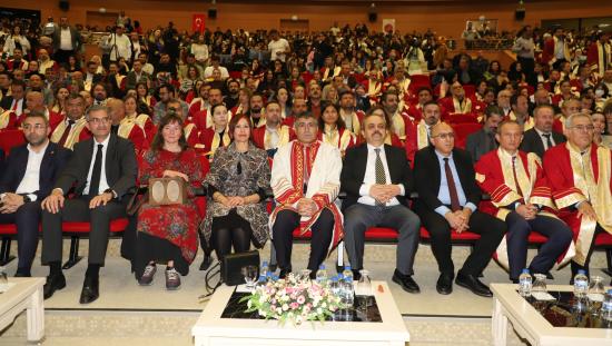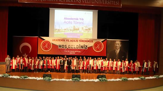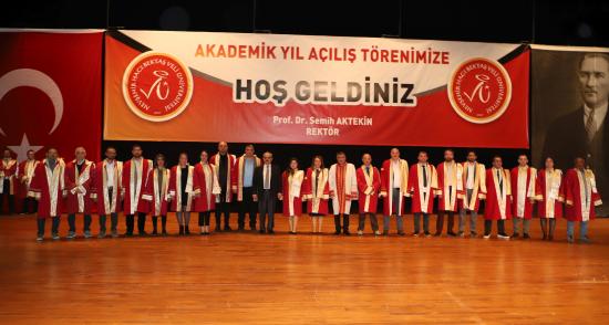 Nevşehir Hacı Bektaş Veli Üniversitesi (NEVÜ)’de 2025-2026 Akademik Yılı açılışı, yoğun bir katılımla gerçekleştirildi. NEVÜ Vali Şinasi Kuş Kültür ve Kongre Merkezi’nde gerçekleştirilen törene; NEVÜ Rektörü Prof. Dr. Semih Aktekin, Nevşehir Vali Yardımcısı Ramazan Yıldırım, Fatih Sultan Mehmet Vakıf Üniversitesi öğretim üyesi ve Türk Maarif Ansiklopedisi Bilim Kurulu Başkanı Prof. Dr. Azmi Özcan, NEVÜ Rektör Yardımcıları Prof. Dr. Bayram Deviren ve Prof. Dr. Mutluhan Akın, Nevşehir İl Milli Eğitim Müdürü Yusuf Yazıcı, Nevşehir Gençlik ve Spor İl Müdürü Mustafa Hakan Keskin, Nevşehir İli Kalkınma ve Üniversite Yaptırma Yaşatma Vakfı Yönetimi, Nevşehir il protokolü, ilçe kaymakamları, ilçe ve belde belediye başkanları, hayırseverler, akademik ve idari personel, öğrenciler ve aileleri ile davetliler katıldı.